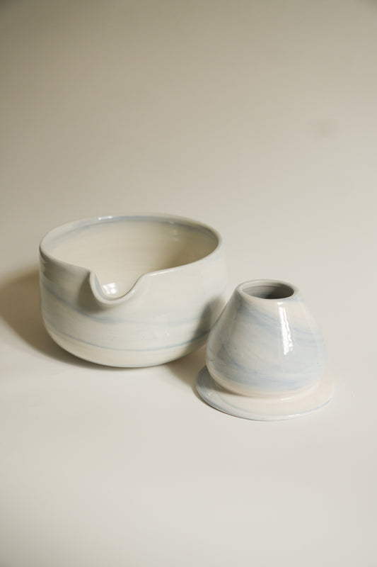 "I ordered a small white matcha bowl with blue flowers and it's beautiful! The craftsmanship is great and I can tell this will be a staple in my kitchen."