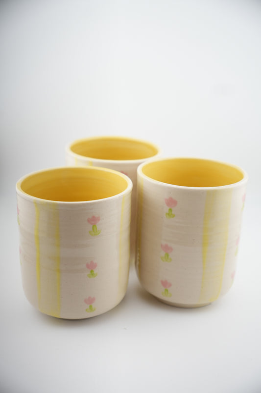 Yellow Striped & Pink Flower Cup