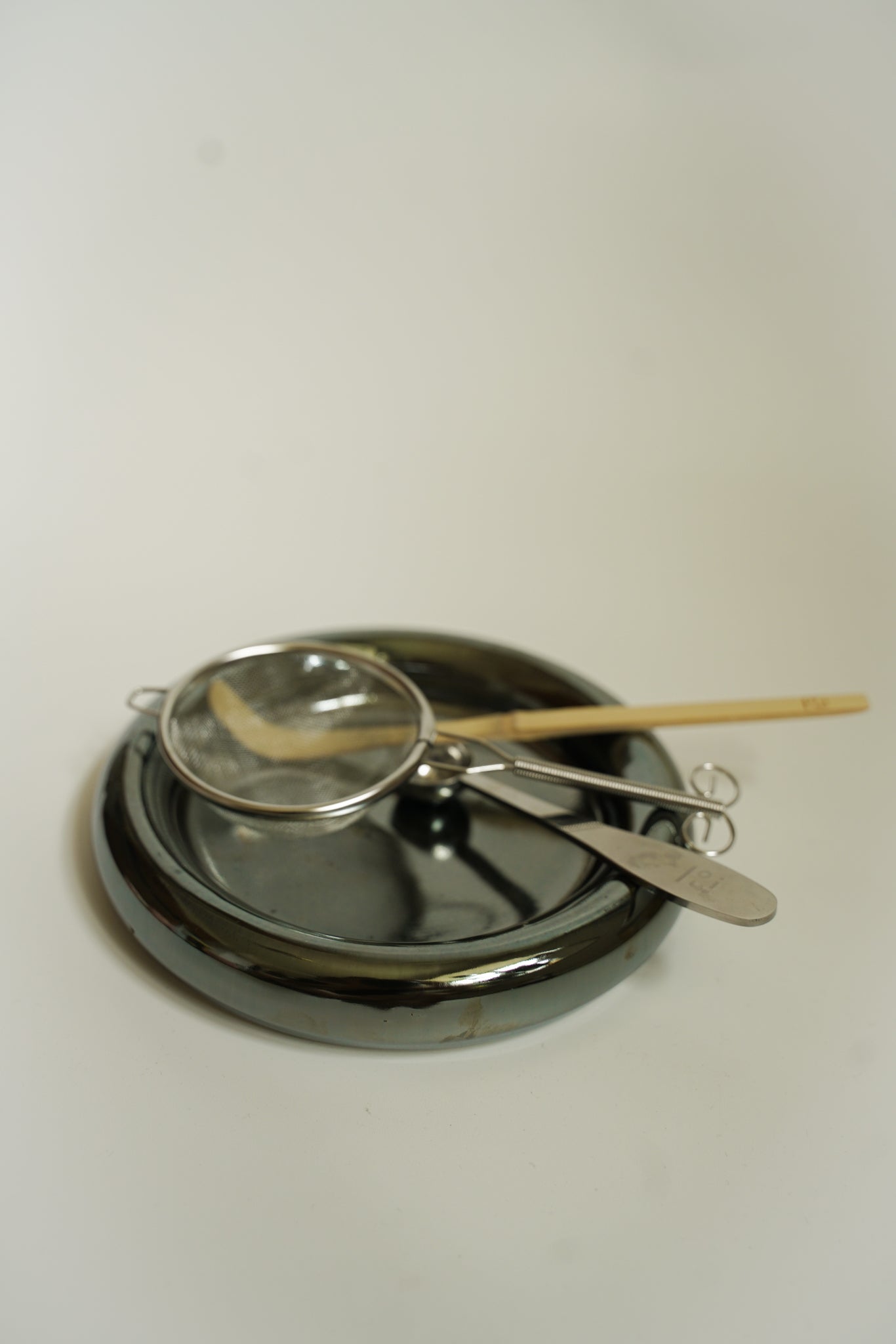 • This piece contains chrome/metallic glazes which are typically not food or microwave safe. Use only as a decorative piece.