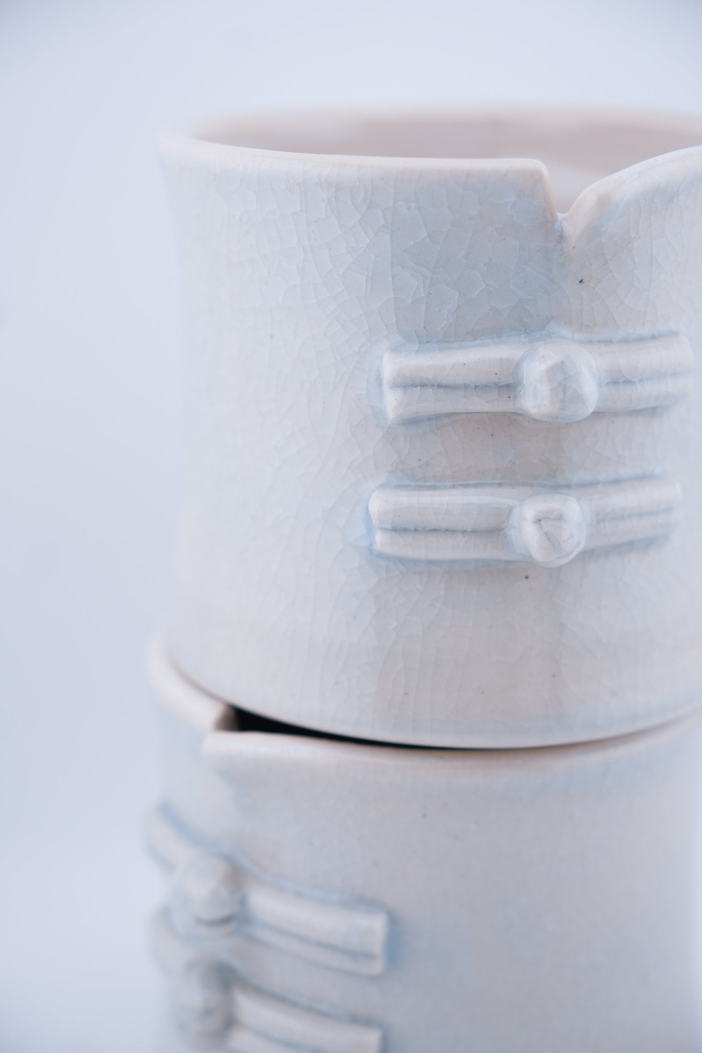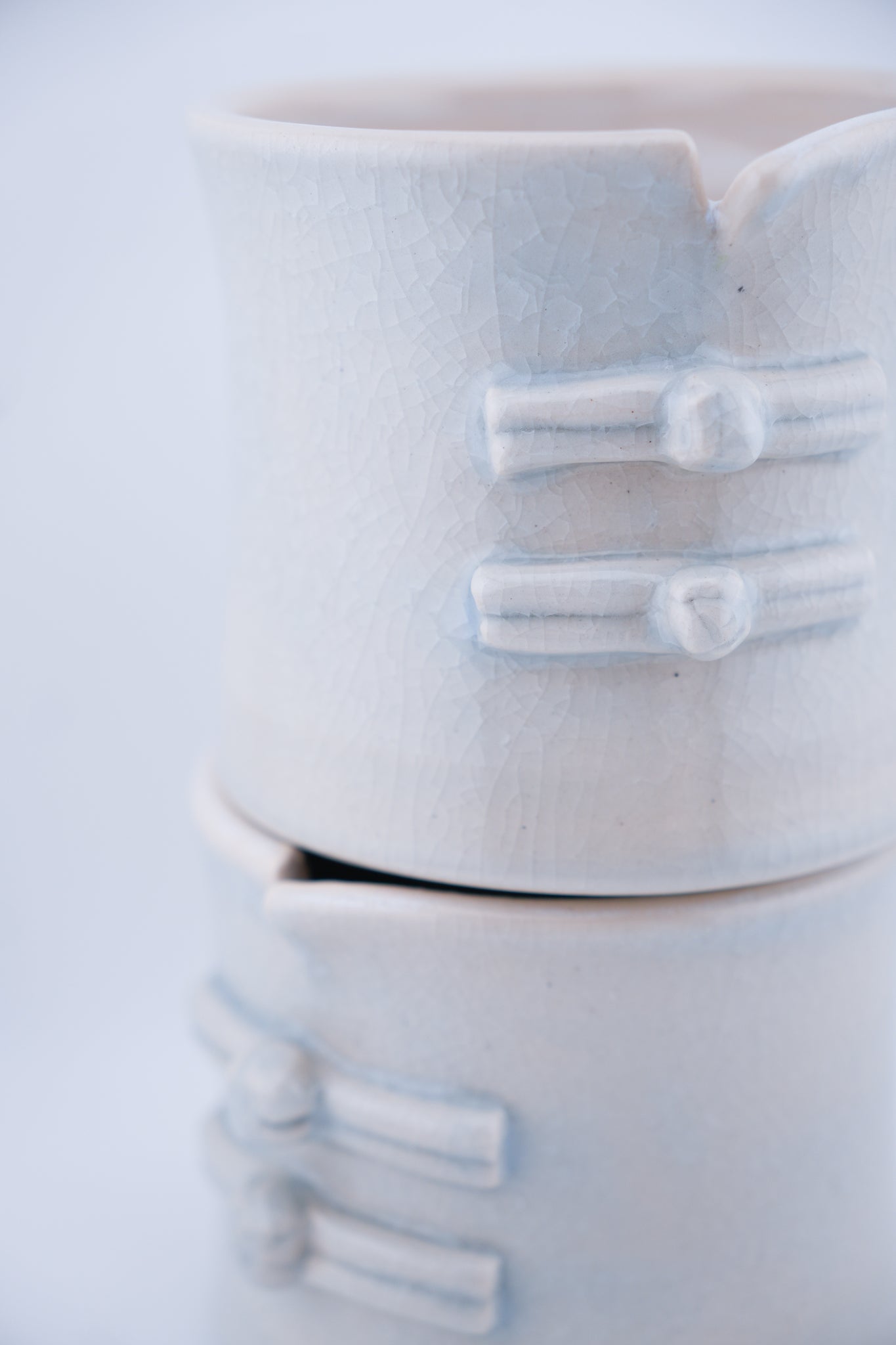 Material: Off-white stoneware clay and non-toxic, lead-free, dinnerware-safe glaze.